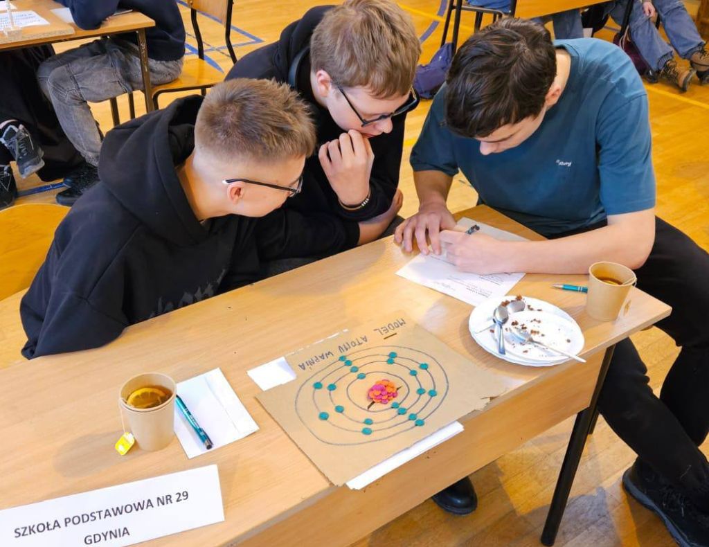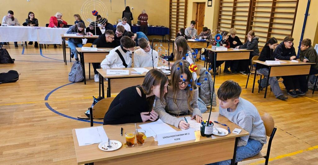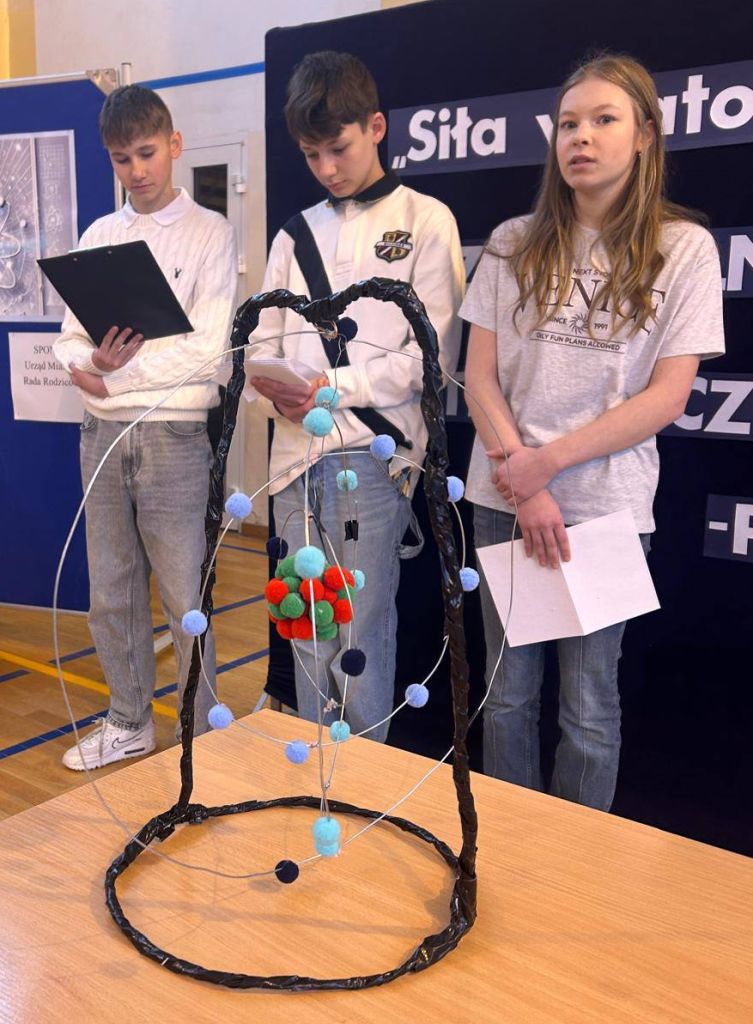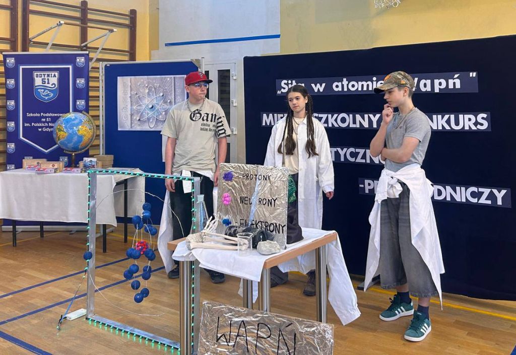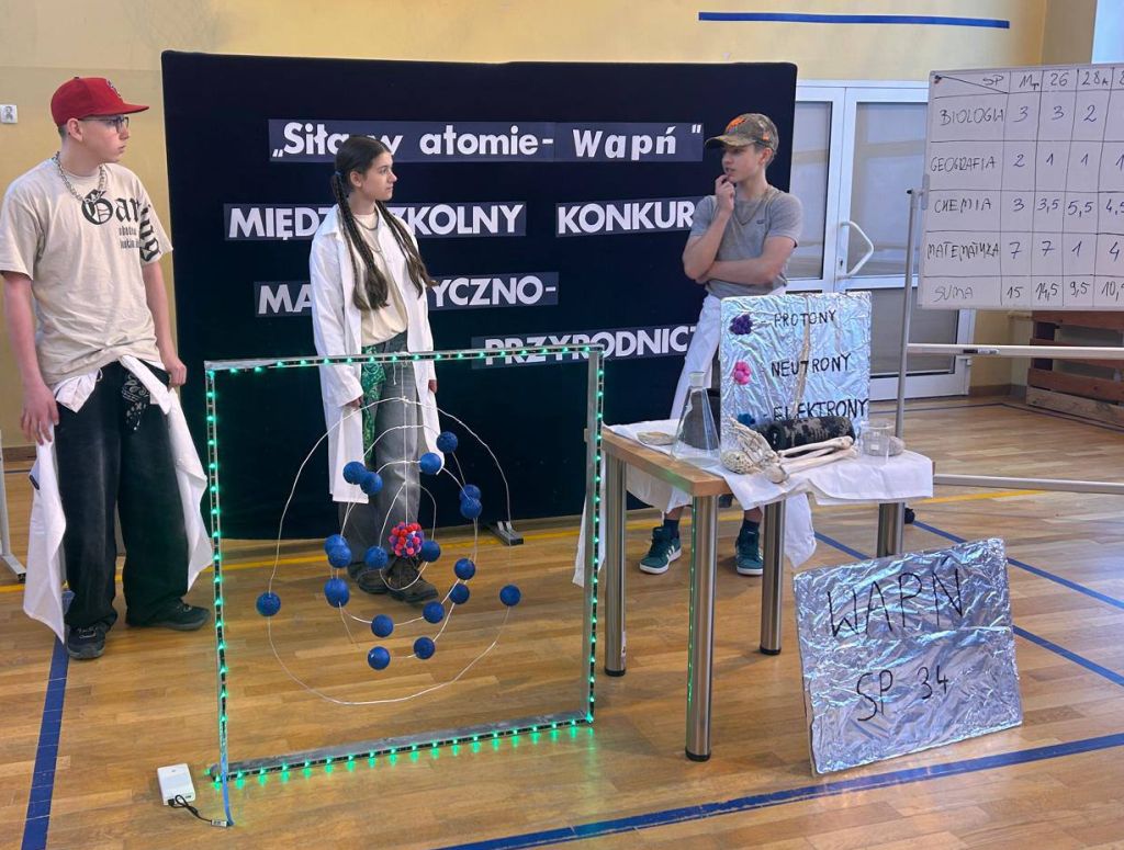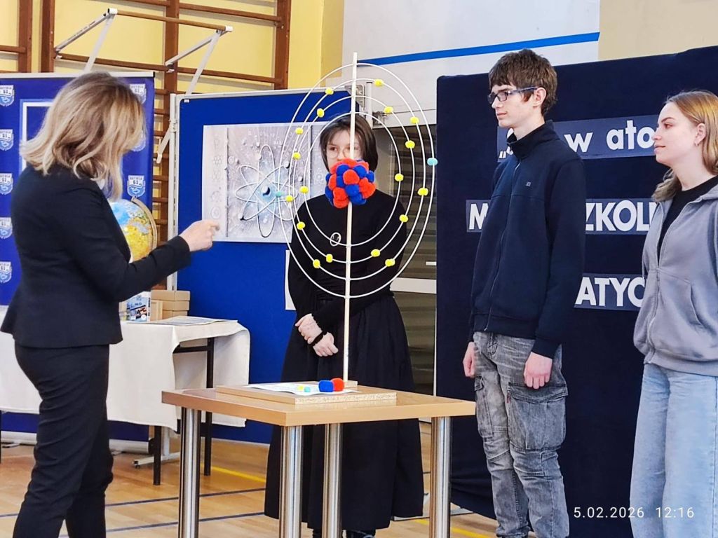 Dnia 5 lutego 2026 roku w naszej szkole odbył się międzyszkolny konkurs matematyczno-przyrodniczy „Siła w atomie”, skierowany do uczniów klas VII i VIII szkół podstawowych. Tego dnia nasza sala gimnastyczna zamieniła się w prawdziwe miasteczko naukowe, pełne doświadczeń, modeli i naukowych inspiracji.