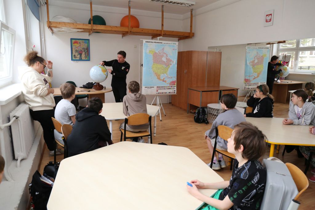 Było to arcyciekawe spotkanie, w którym wykorzystano wiedzę, słowo, mapę, globus. Nie było komputera, rzutnika, smartfona i niebieskich ekranów. To wystarczyło by nawiązać wzajemny kontakt oraz sprowokować do zadawania zaskakujących pytań... Zaplanowane na godzinę zajęcia przedłużyły się na kolejną lekcję.
