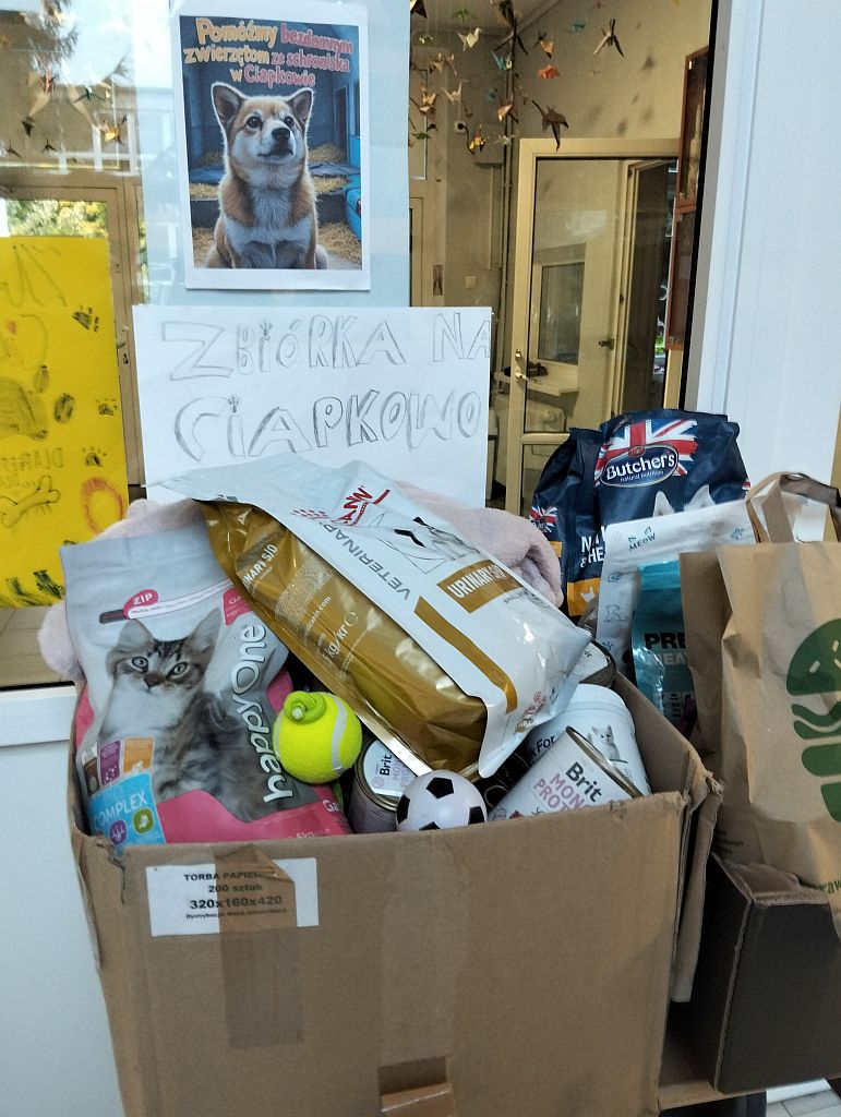 Uczniowie klasy 2b zorganizowali szkolna akcję pomocy bezdomnym zwierzętom ze schroniska w Ciapkowie